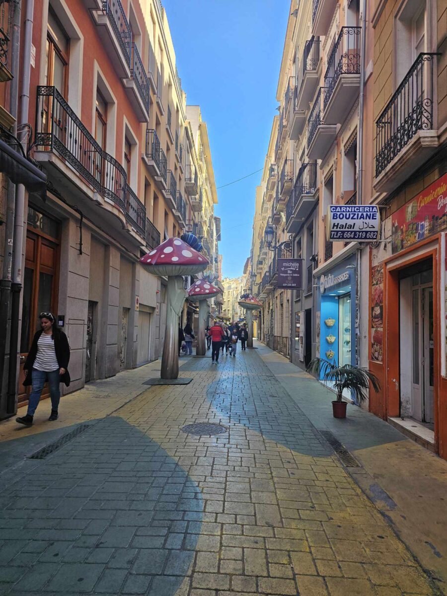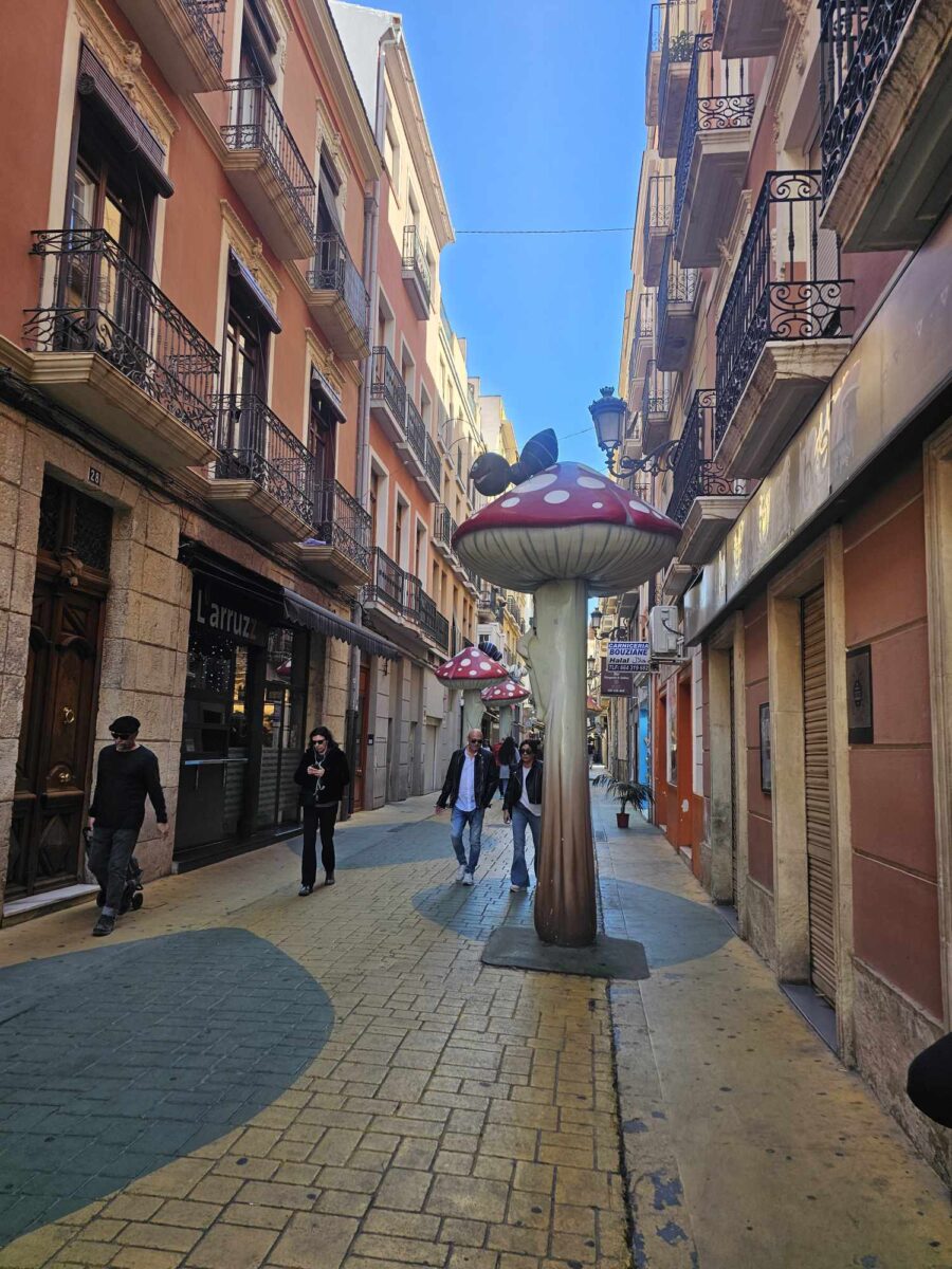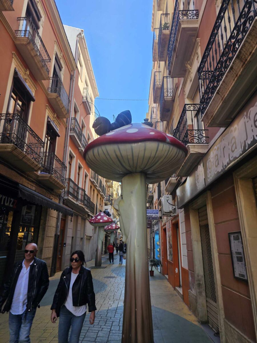 W samym sercu Alicante znajduje się nietypowa uliczka o nazwie Calle de los Hongos, znana również jako “Uliczka z grzybami”. Mieszkańcy oraz artyści zdobią jej mury kolorowymi muralami i instalacjami inspirowanymi kształtem grzybów, co nadaje uliczce niepowtarzalny, artystyczny charakter. To miejsce stało się ulubionym punktem na mapie dla miłośników street artu oraz turystów szukających unikalnych zakątków, w których można poczuć kreatywną atmosferę Alicante.