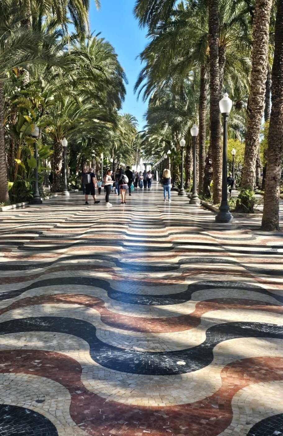 Deptak z kolorową posadzką i palmami - Explanada de España