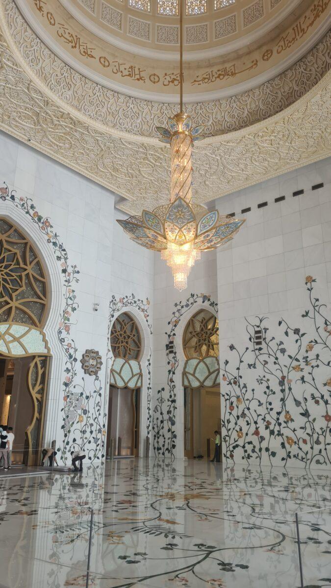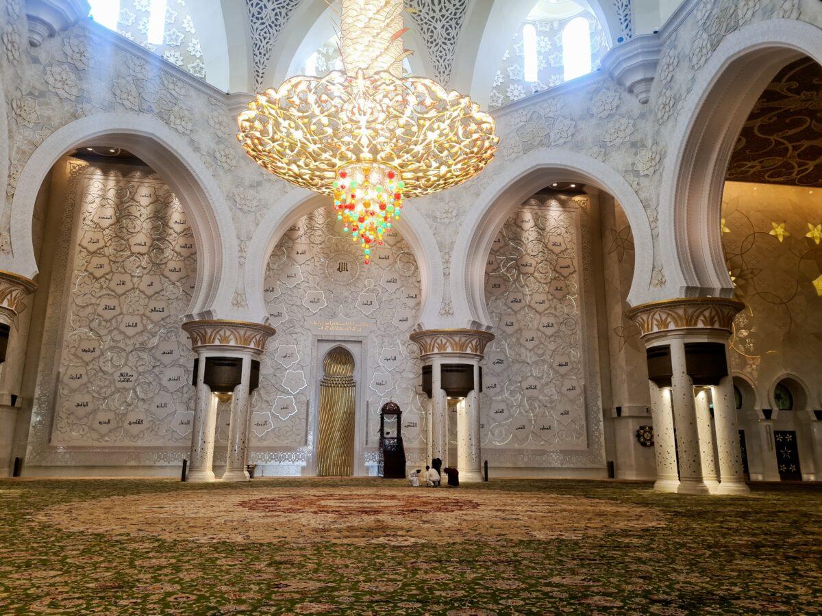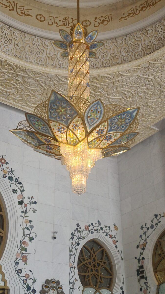 W Wielkim Meczecie Szejka Zayeda znajduje się jeden z największych żyrandoli na świecie, który jest jednym z głównych elementów dekoracyjnych.